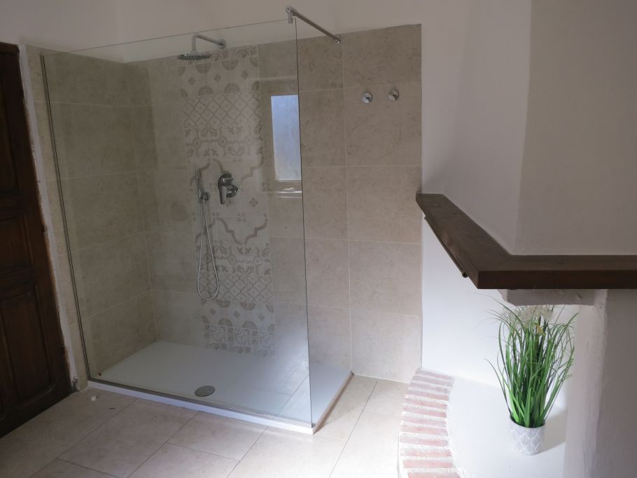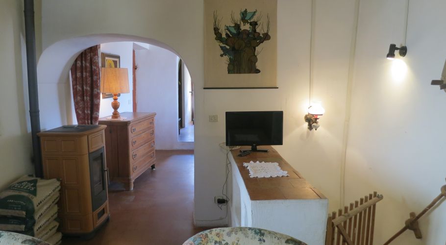 Die Wohnung hat eine Größe von ca. 100 m², mit einer offenen und einer überdachten Terrasse. Sie verfügt über zwei geräumige Schlafzimmer mit einem Doppelbett und einem Einzelbett, sowie über ein Esszimmer mit großem Tisch für 10 Personen. Im Wohnzimmer befindet sich ein offener Kamin und die Sitzgruppe. Bis auf ein Schlafzimmer befinden sich alle Räume auf einer Ebene. Die Küche verfügt über einen Gasherd mit elektrischem Backofen, Geschirrspüler und ist darüber hinaus reichhaltig ausgestattet. Von der Küche und dem Esszimmer betritt man die nach oben offene Terrasse. Das großzügige Bad enthält eine Dusche, Waschtisch und eine Waschmaschine. Die Warmwasserversorgung läuft über einen Gas-Durchlauferhitzer. Alle Betten haben neue Matrazen (80x200), welche auf einem Lattenrost liegen. Von dem zweiten Schlafzimmer im Untergeschoss betritt man die überdachte Terrasse. Sonnenliegen, Gartenstühle und Tische, sowie ein fahrbarer Grill, stehen zur Verfügung.